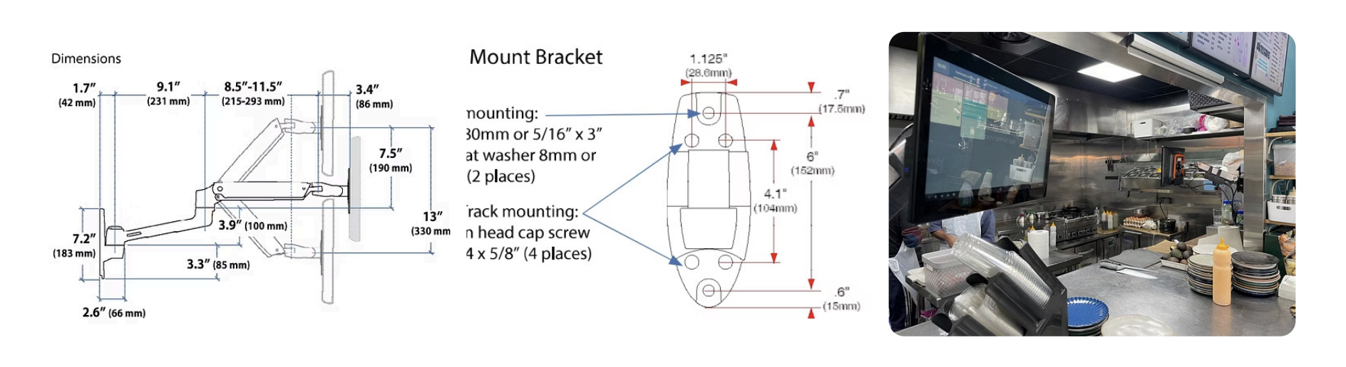 Ce guide détaille l'installation des écrans cuisine (KDS) Innovorder — comptoir, mural fixe et mural avec bras articulé — ainsi que des accessoires comme le tiroir-caisse.